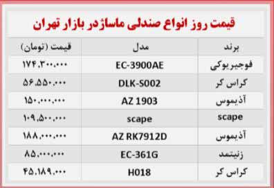 آنچه در زیر می‌آید جدول قیمت روز انواع صندلی ماساژ در سایت‌های فروش اینترنتی است.