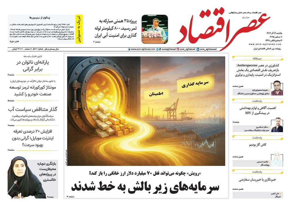 نسخه الکترونیک روزنامه عصراقتصاد؛ ۲۲ آذر ماه ۱۴۰۱
