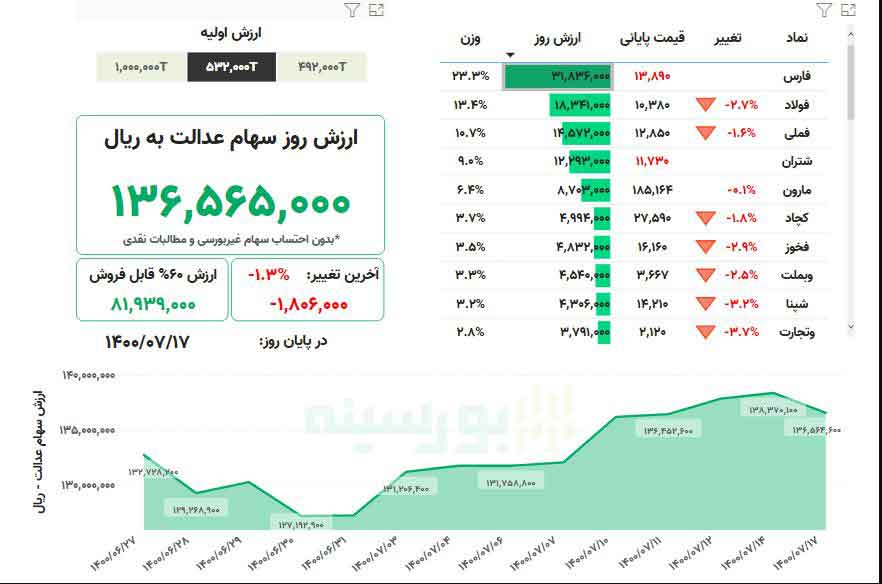 ارزش سهام عدالت، ۱.۳درصد کاهش یافت.
