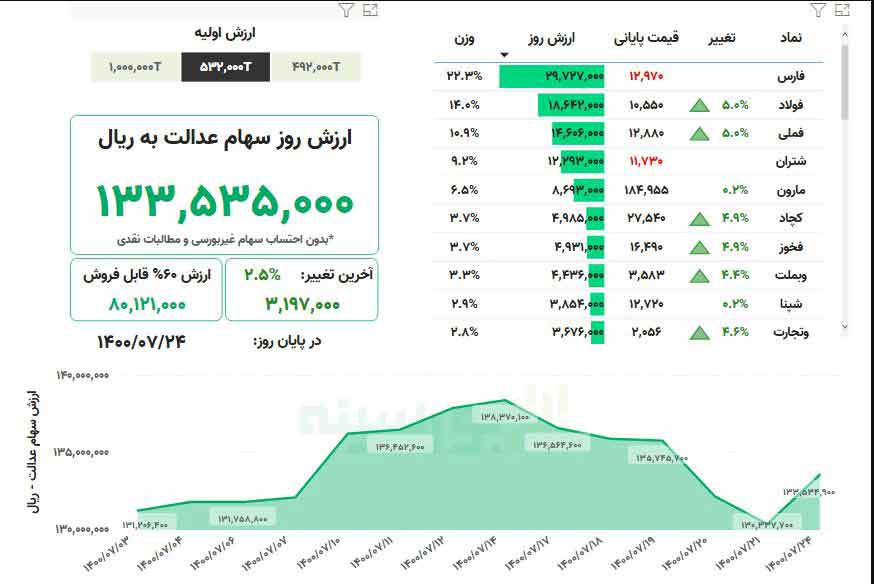 ارزش سهام عدالت، ۲.۵درصد افزایش یافت.