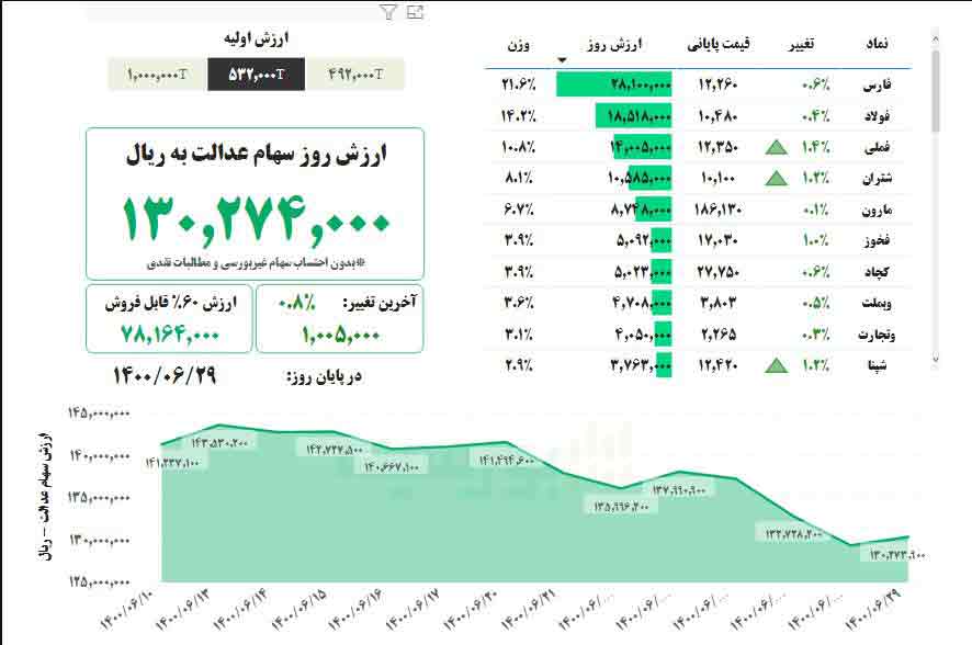 ارزش سهام عدالت، ۰.۸درصد افزایش یافت.