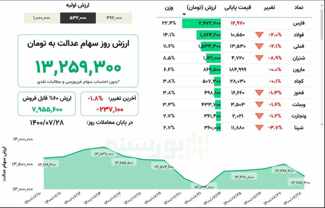 ارزش سهام عدالت، ۱.۸درصد کاهش یافت.