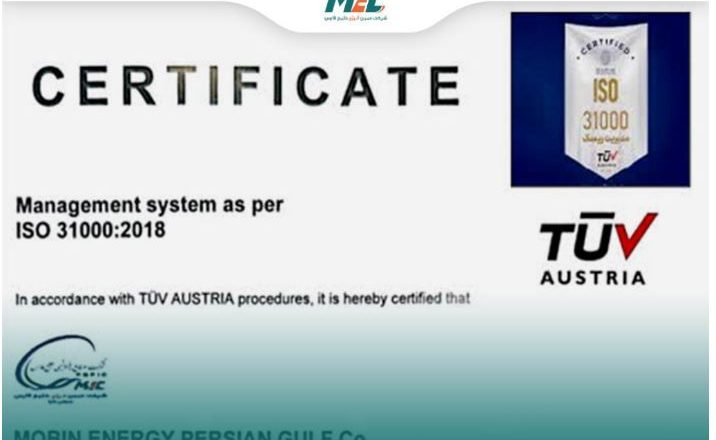 تمدید اعتبار گواهینامه بینالمللی ISO 31000 در شرکت مبین انرژی خلیج فارس