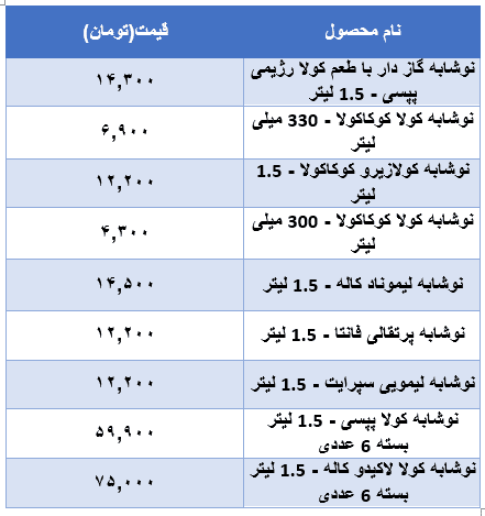 در این گزارش به قیمت برخی از انواع نوشابه موجود در بازار پرداخته ایم.
