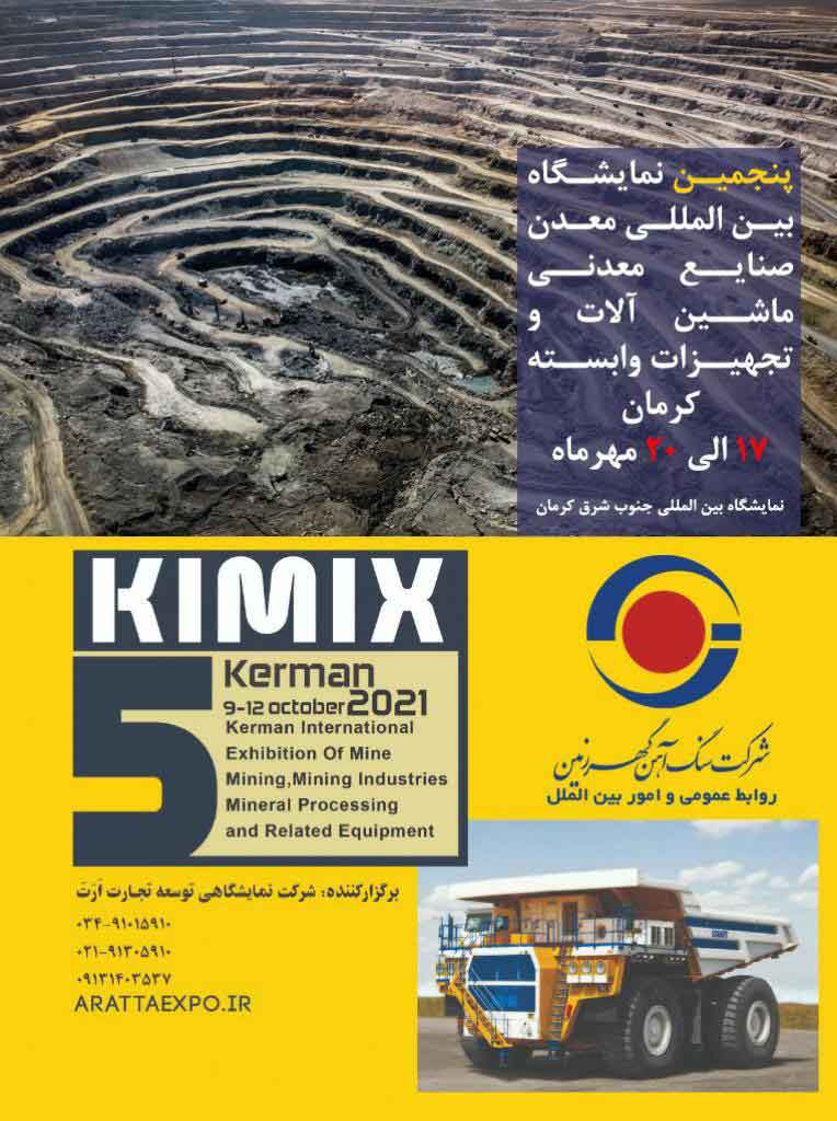 پنجمین نمایشگاه بین المللی معدن، صنایع معدنی، ماشین آلات و تجهیزات وابسته کرمان (kimix 2021 ) با حضور شرکت سنگ آهن گهرزمین از امروز آغاز می‌شود.