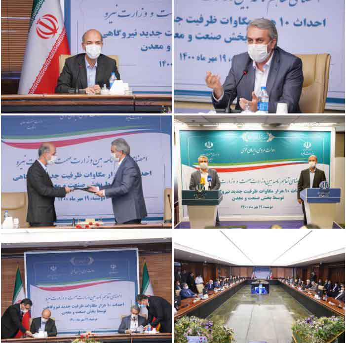 تفاهم‌نامه بین وزارت صمت و وزارت نیرو برای احداث ۱۰ هزار مگاوات ظرفیت جدید نیروگاهی توسط بخش صنعت و معدن به امضا رسید.