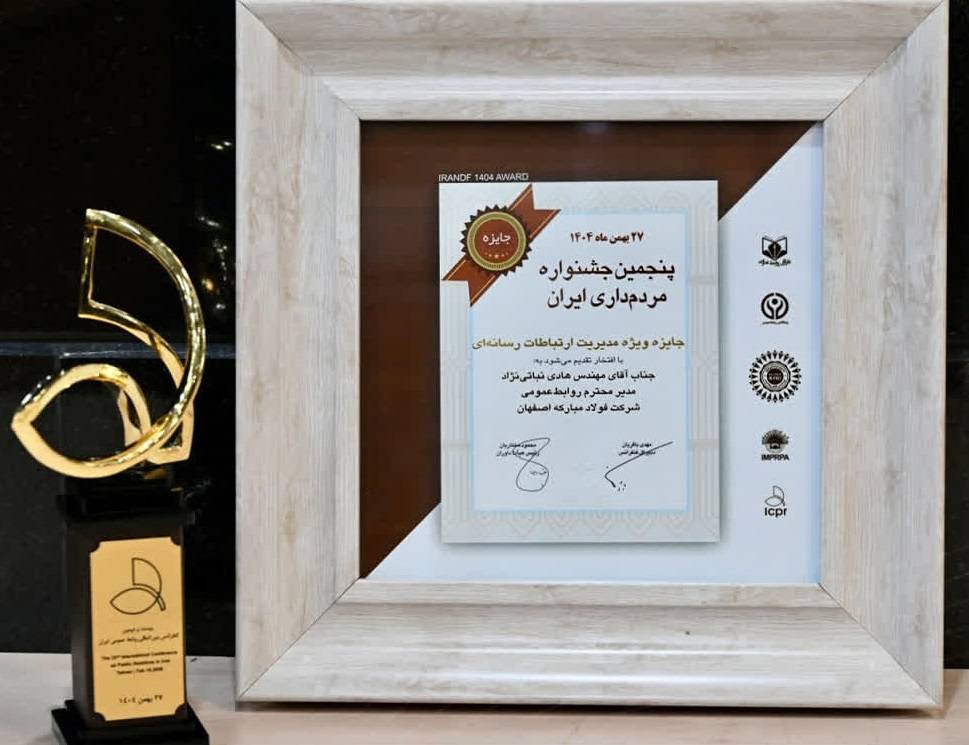 مدیریت ارتباطات و توسعه برند سازمانی فولاد مبارکه در بیستودومین دوره کنفرانس بینالمللی روابط عمومی ایران همزمان با جشنواره مردمداری ایران، موفق به دریافت تندیس و جایزه ویژه بخش مدیریت روابط رسانهای شد.