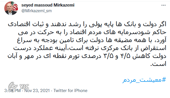 میرکاظمی: توانستیم ۳.۵ تا ۴.۵ درصد تورم را کاهش دهیم