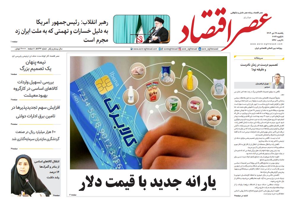 نسخه الکترونیک روزنامه عصر اقتصاد؛ ۴ بهمن ماه ۱۴۰۴
