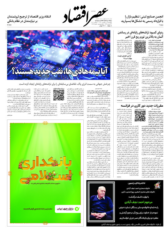 نسخه الکترونیک روزنامه عصر اقتصاد؛ ۱۰ شهریورماه ۱۴۰۰ را از اینجا دریافت کنید.