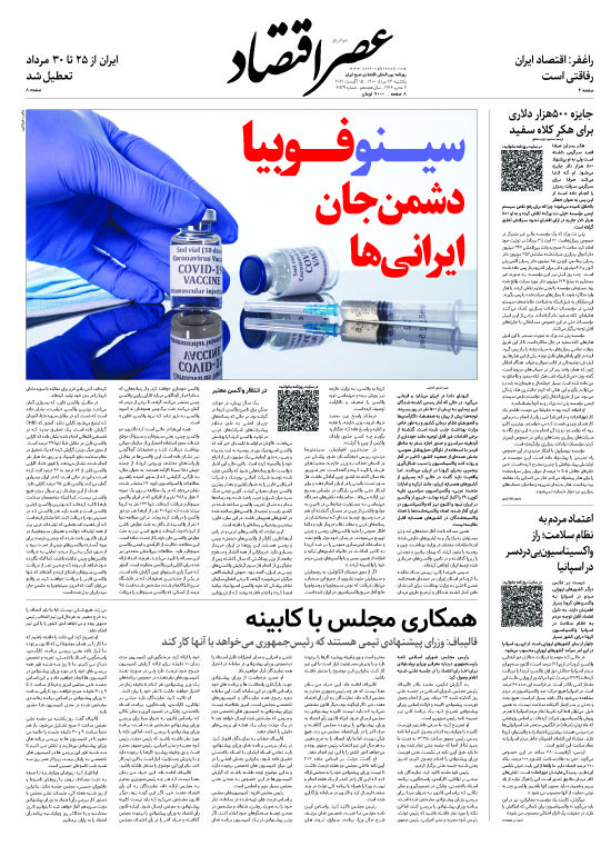 نسخه الکترونیک روزنامه عصراقتصاد؛ ۲۴ مردادماه ۱۴۰۰ را از اینجا دریافت کنید.