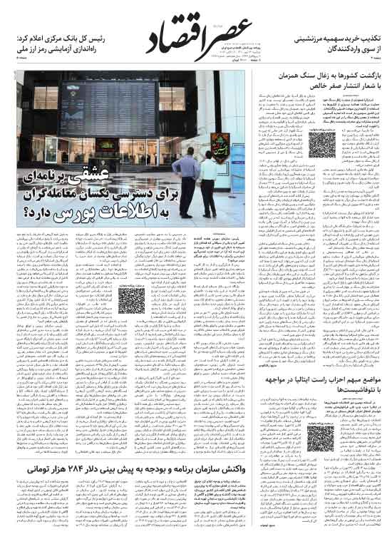 نسخه الکترونیک روزنامه عصر اقتصاد؛ ۲۶ مهرماه ۱۴۰۰ را از اینجا دریافت کنید.
