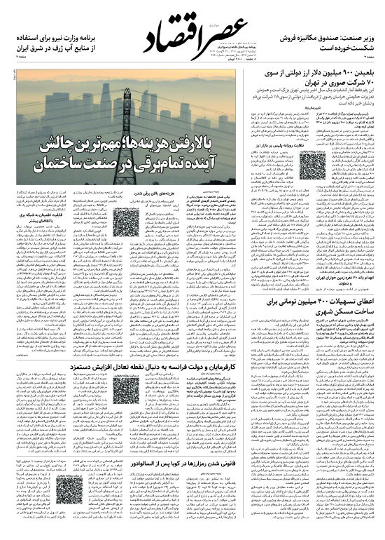 نسخه الکترونیک روزنامه عصر اقتصاد؛ 8 شهریورماه ۱۴۰۰ را از اینجا دریافت کنید. بالارفتن هزینهها؛ مهمترین چالش آینده تمامبرقی در صنعت ساختمان بلعیدن ۹۰۰ میلیون دلار ارز دولتی از سوی ۷۰ شرکت صوری در تهران کارفرمایان و دولت فرانسه به دنبال نقطه تعادل افزایش دستمزد قانونی شدن رمزارزها در کوبا پس از السالوادور
