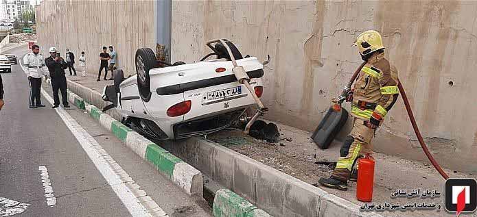علیرضا جهانشاه؛ فرمانده عملیات ایستگاه ۵۸ آتش‌نشانی تهران درباره جزئیات این حادثه اظهار کرد: یک دستگاه خودروی سواری پژو ۲۰۶ به علت نامعلومی پس از برخورد با تابلوهای کنار بلوار واژگون شد اما خوشبختانه راننده خودرو دراین حادثه آسیب چندانی ندید.