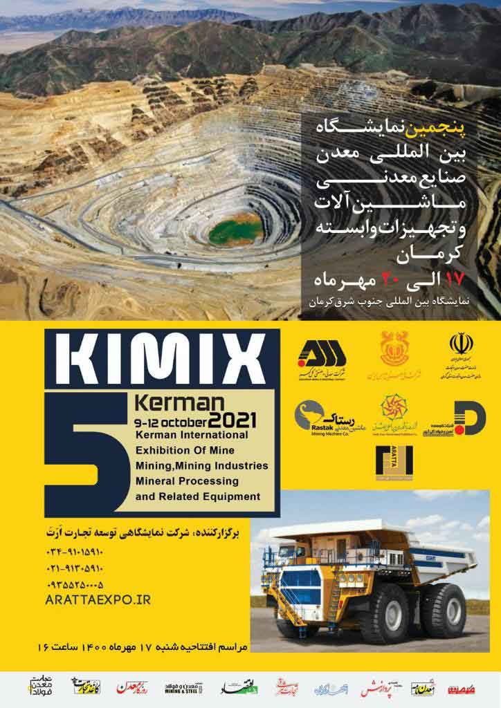 پنجمین نمایشگاه بین الملی معدن، صنایع معدنی، ماشین آلات و تجهیزات وابسته کرمان (kimix 2021 ) با حضور ‌و حمایت شرکت معدنی و صنعتی گل‌گهر از امروز شنبه آغاز می‌شود.