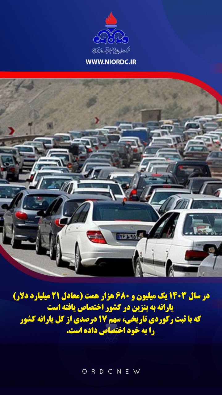 یارانه اختصاص یافته به بنزین در سال ۱۴۰۳، یک میلیون و ۶۸۰ هزار همت (معادل ۲۱ میلیارد دلار) بوده است که این امر حاکی از آن است که دولت روزانه نزدیک به ۵ هزار میلیارد تومان برای یارانه سوخت هزینه کرده است.