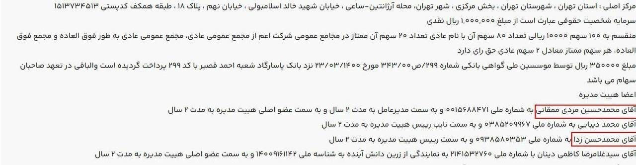 جالبتر اینکه، ریاست هیأت مدیره این شرکت را «محمدحسن زدا» بر عهده دارد؛ فردی که پس از بازنشستگی، در شبکههای اجتماعی و رسانهها بهعنوان «مشاور بیمهای» شناخته میشود. وی در دوران فعالیت خود در این شرکت، بهطور همزمان مسئولیتهایی در سطح عالی سازمان تأمین اجتماعی داشته است، از جمله معاونت بیمهای، قائممقامی و حتی سرپرستی این سازمان.